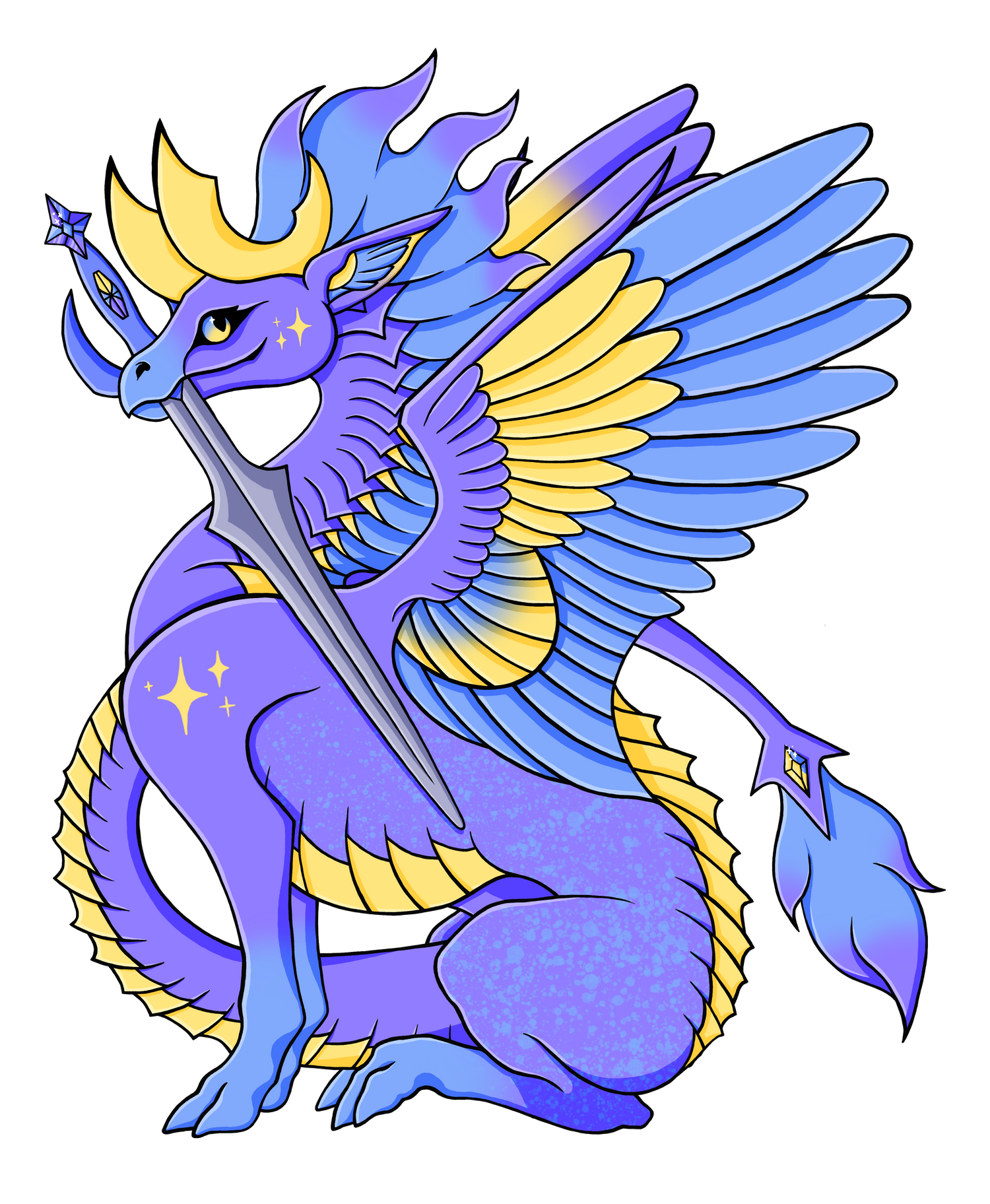 Blue and gold Dragon original art